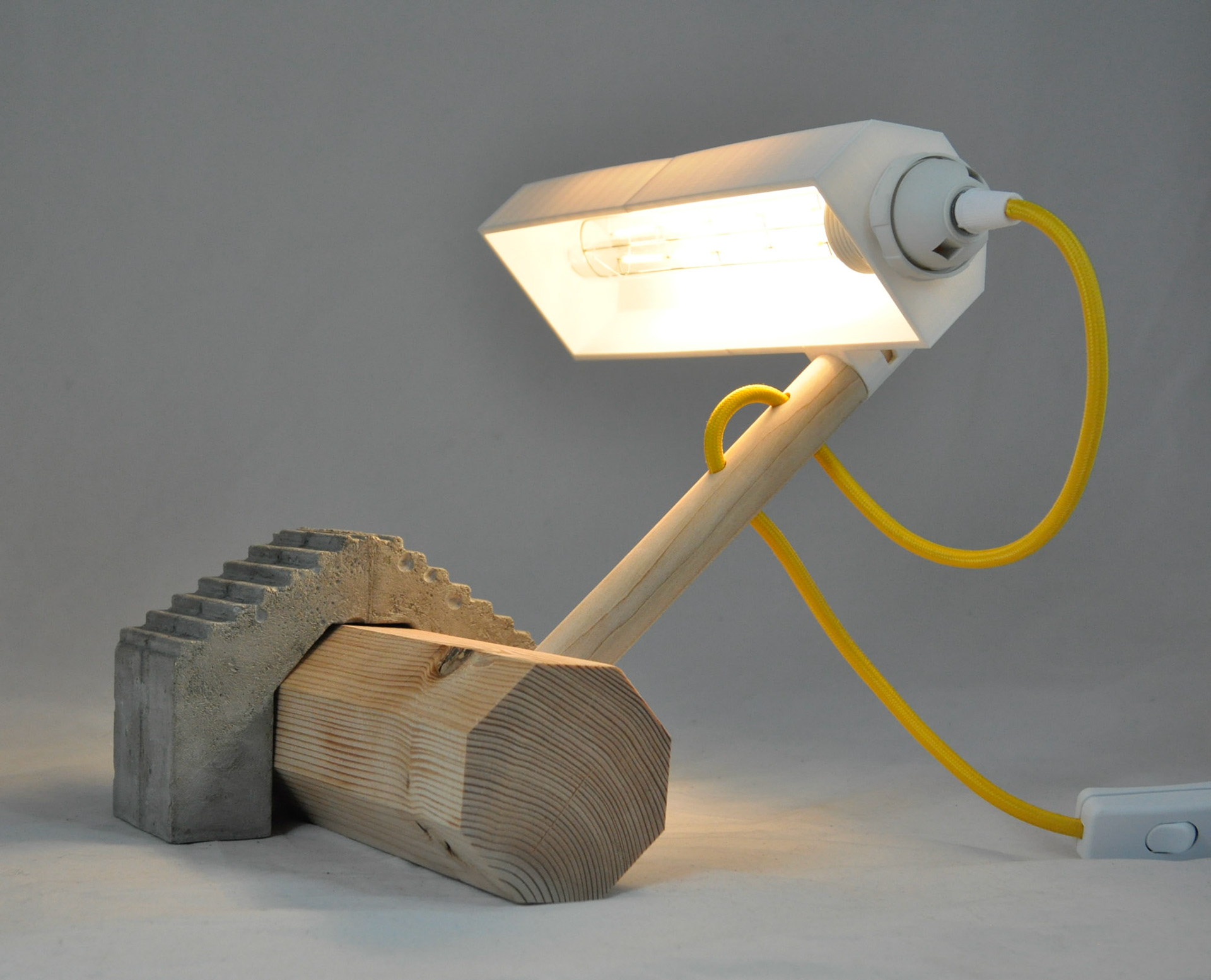 2019 hard maple, cedar, cement, PLA filament, LED tube bulb, braided cord 10"x6"x10"