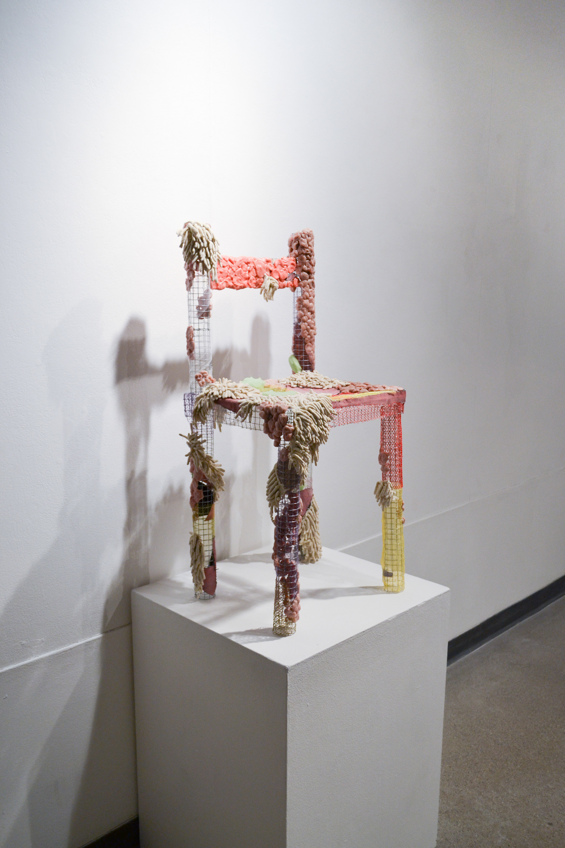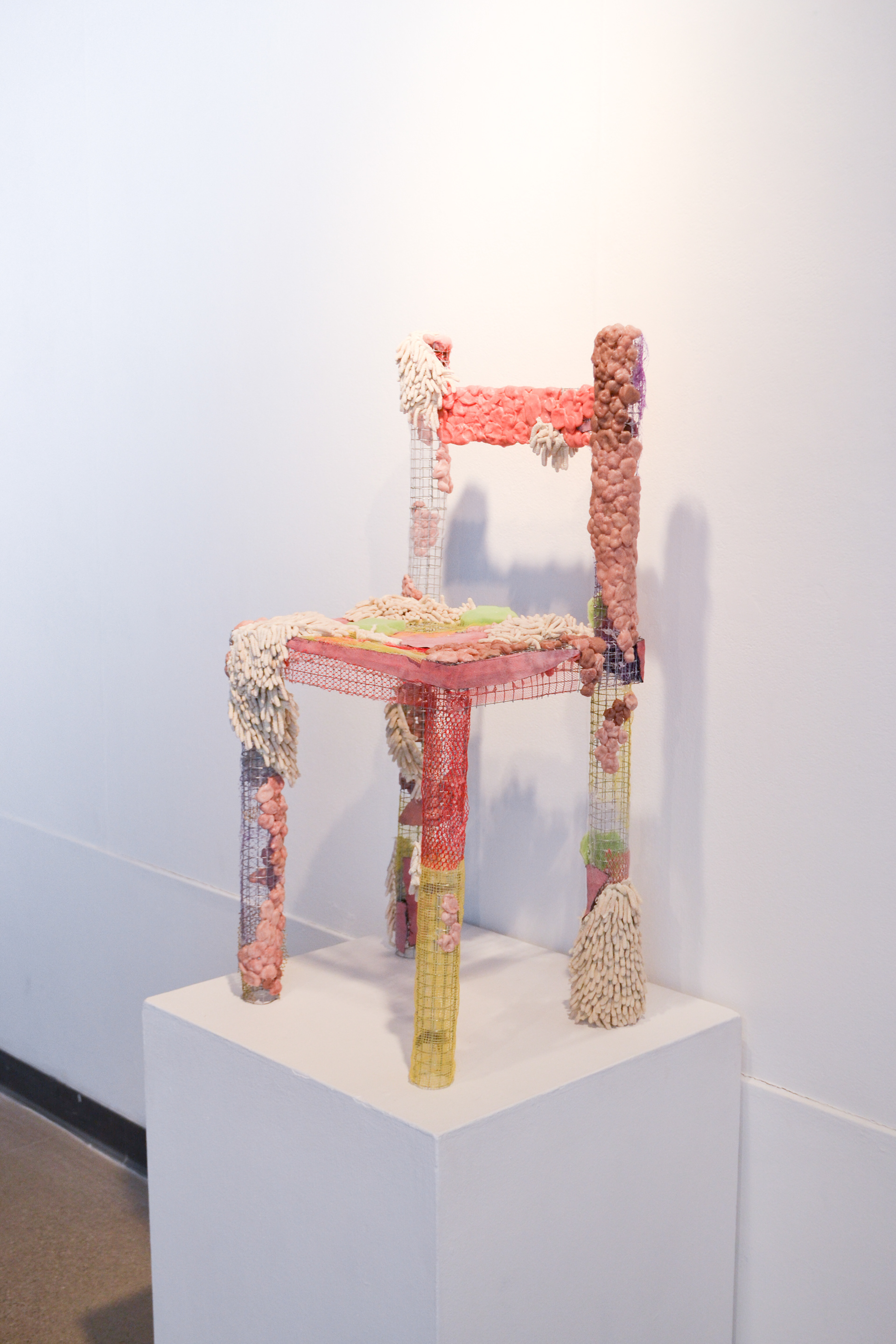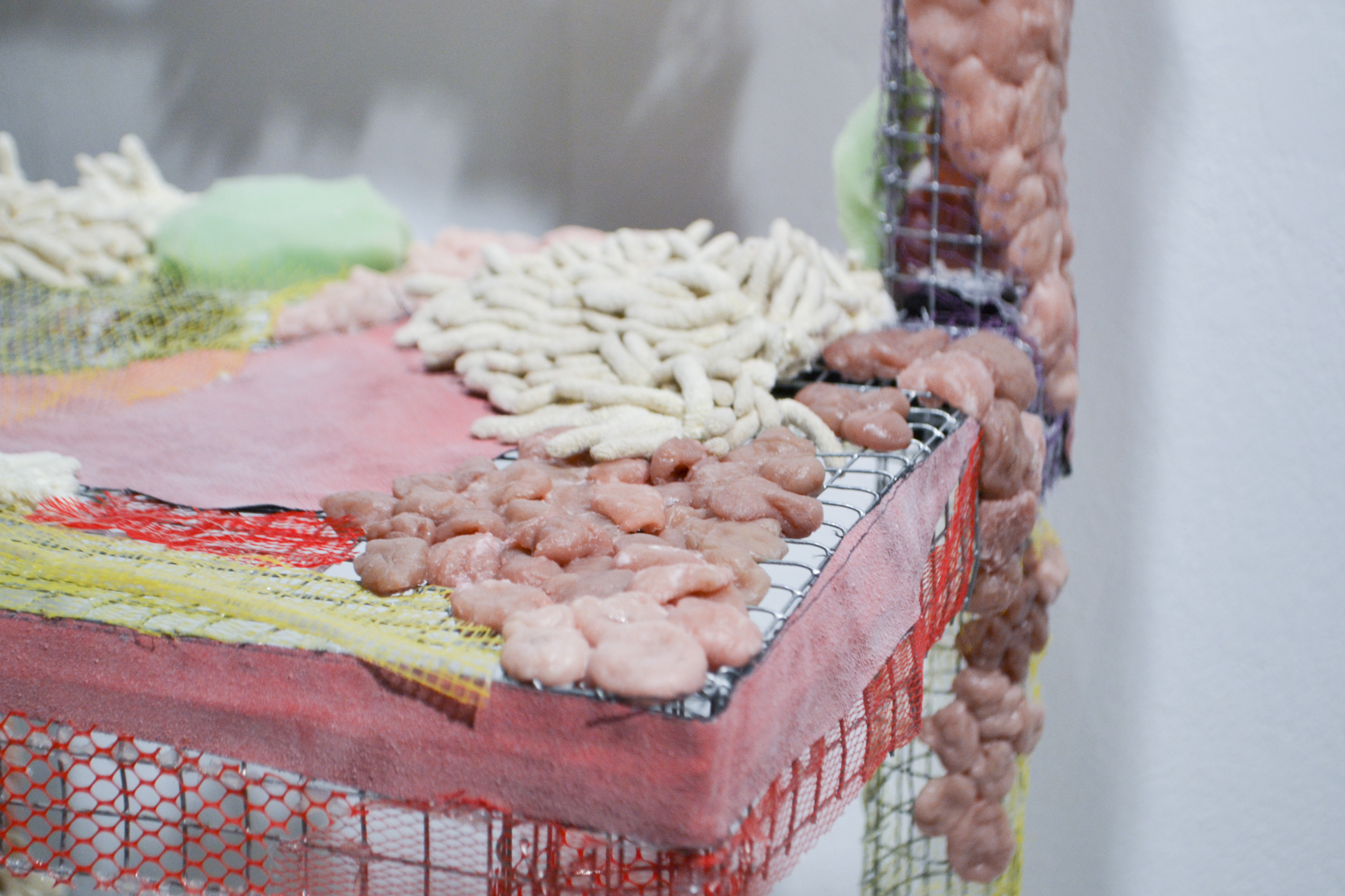 2017 chewed gum wads, found materials, netting, wire mesh 20"x20"x36"