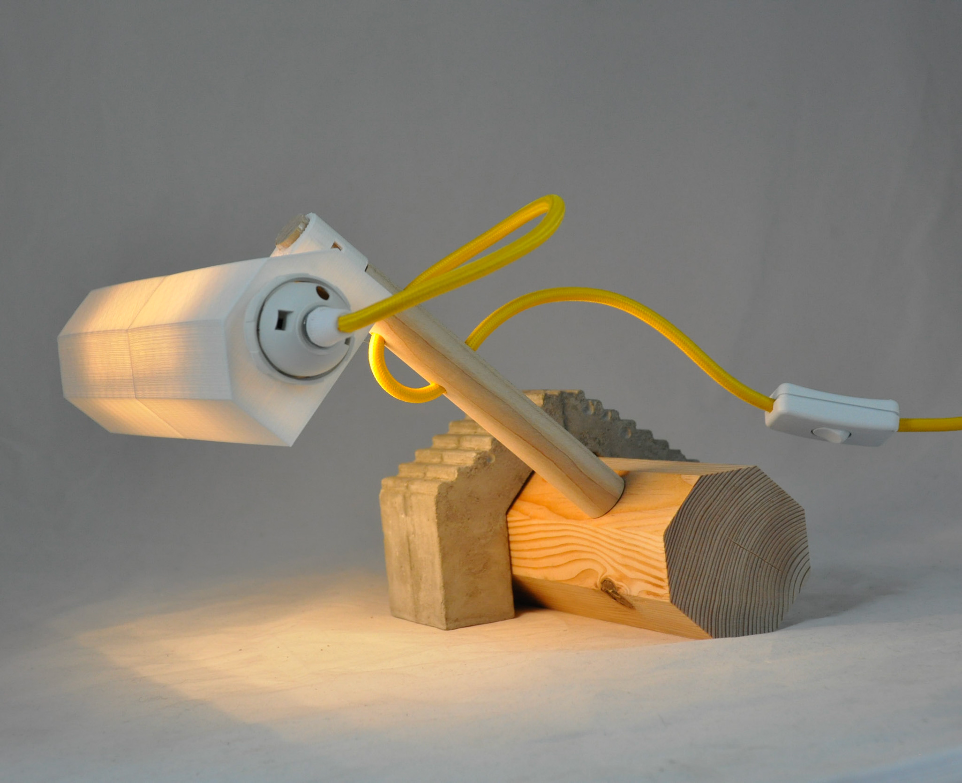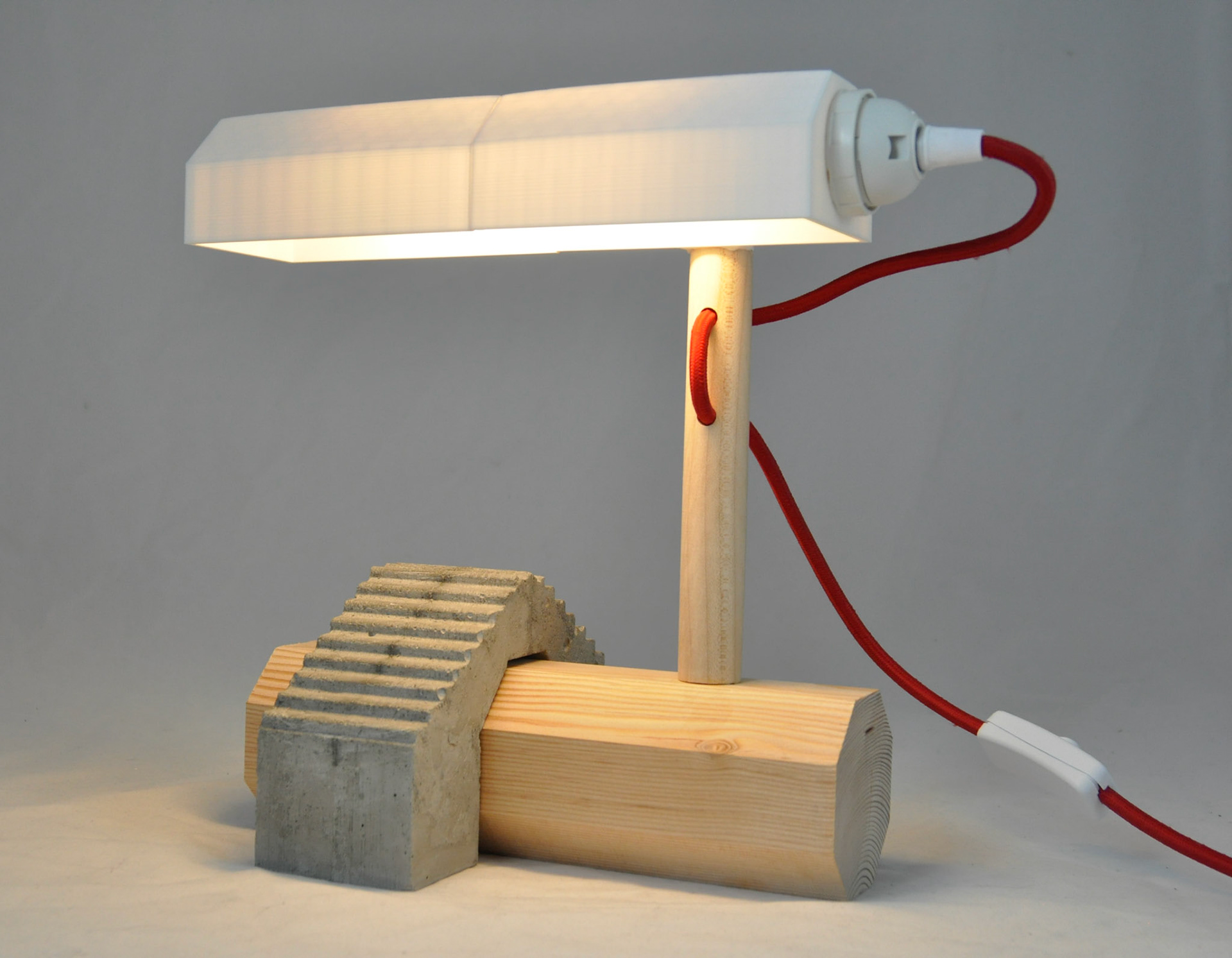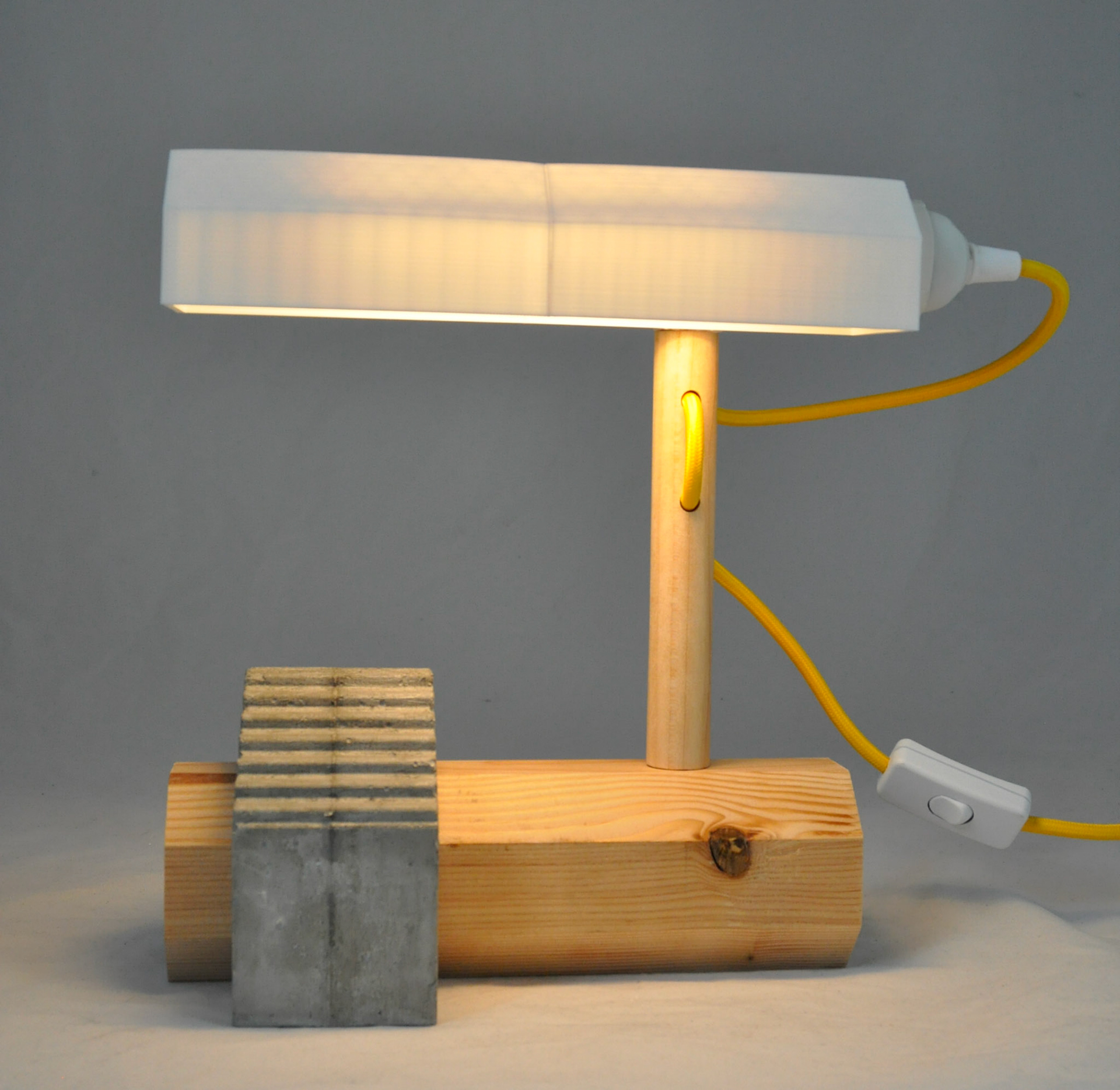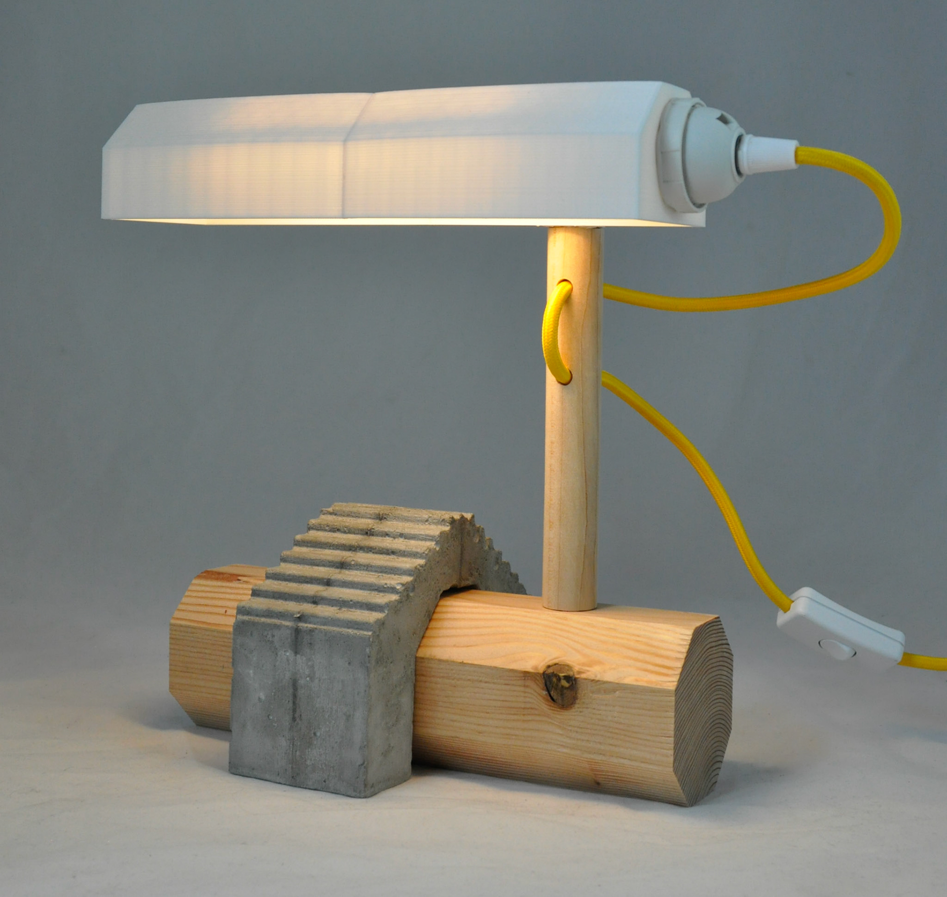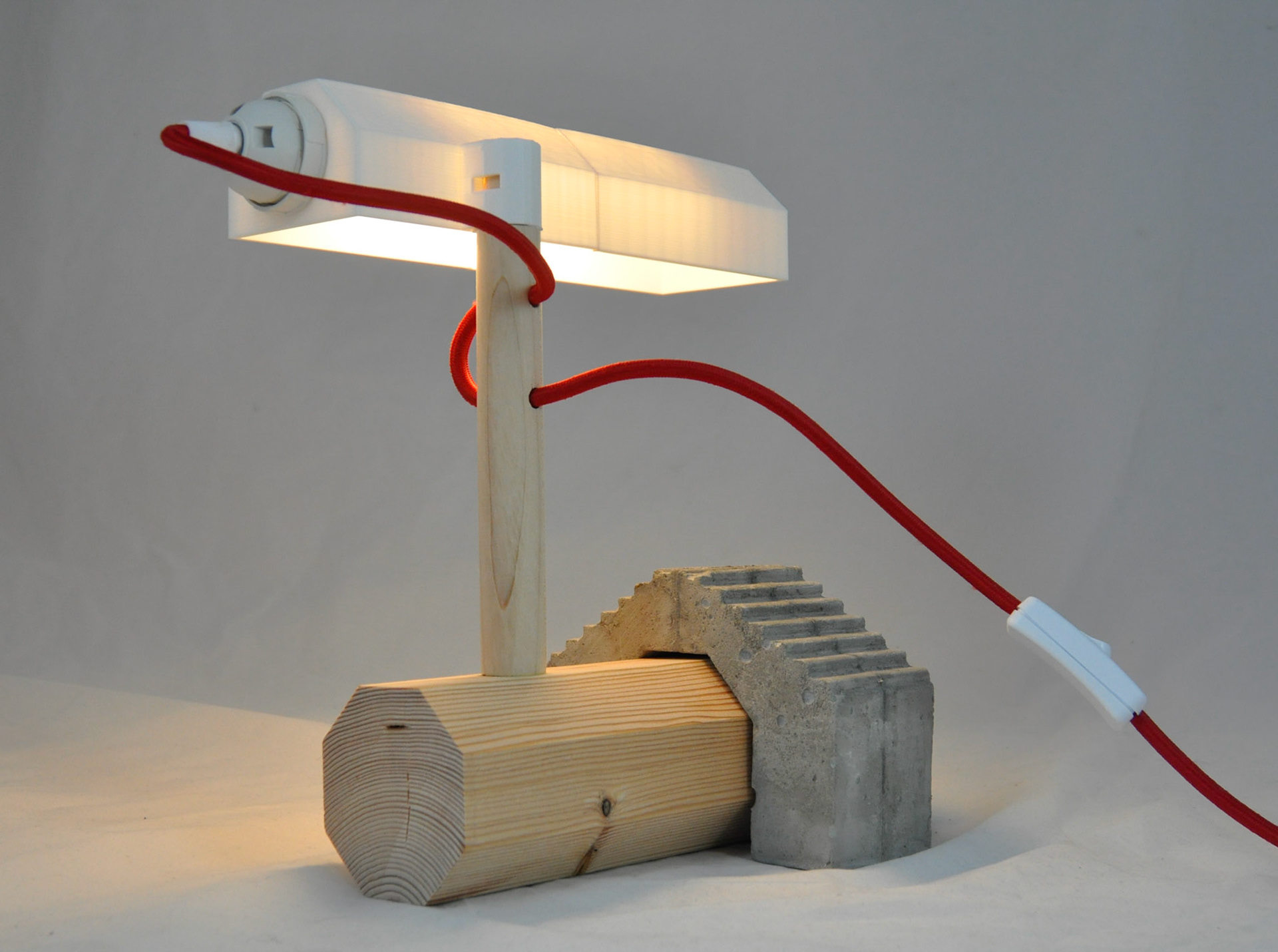 2019 hard maple, cedar, cement, PLA filament, LED tube bulb, braided cord 10"x6"x10"